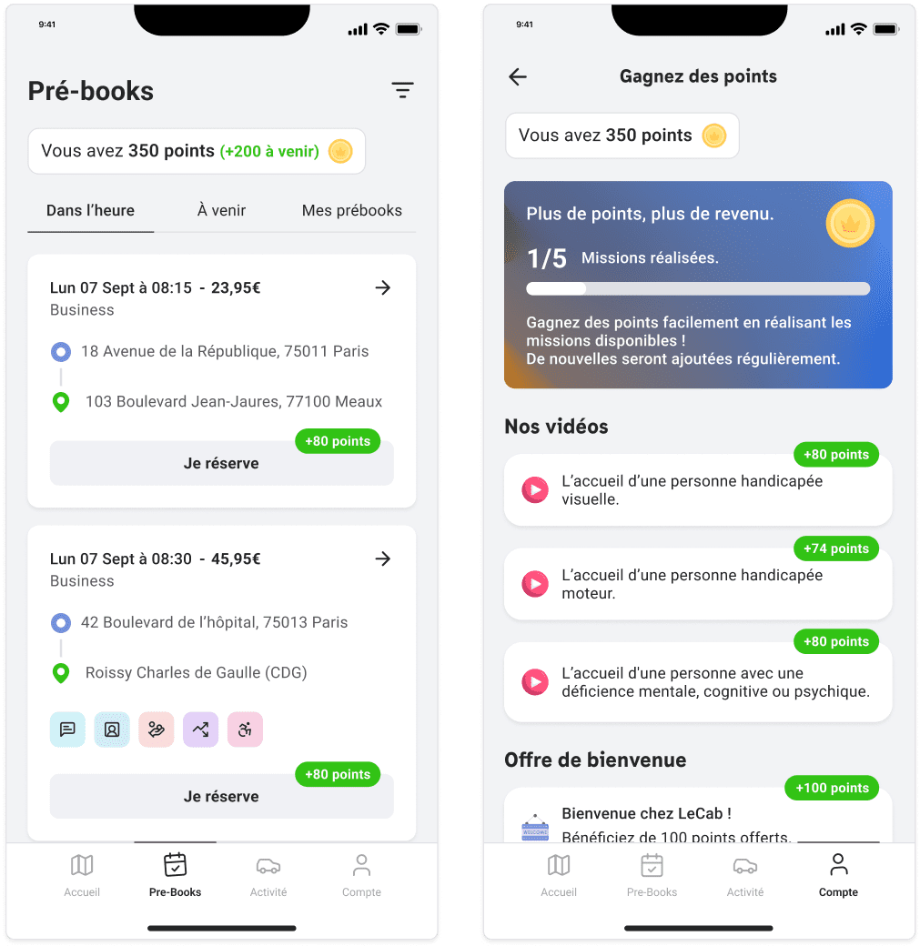 Gagnez des points lorsque vous réalisez des courses en demande immédiate et cumulez-les pour avoir accès aux meilleures courses !