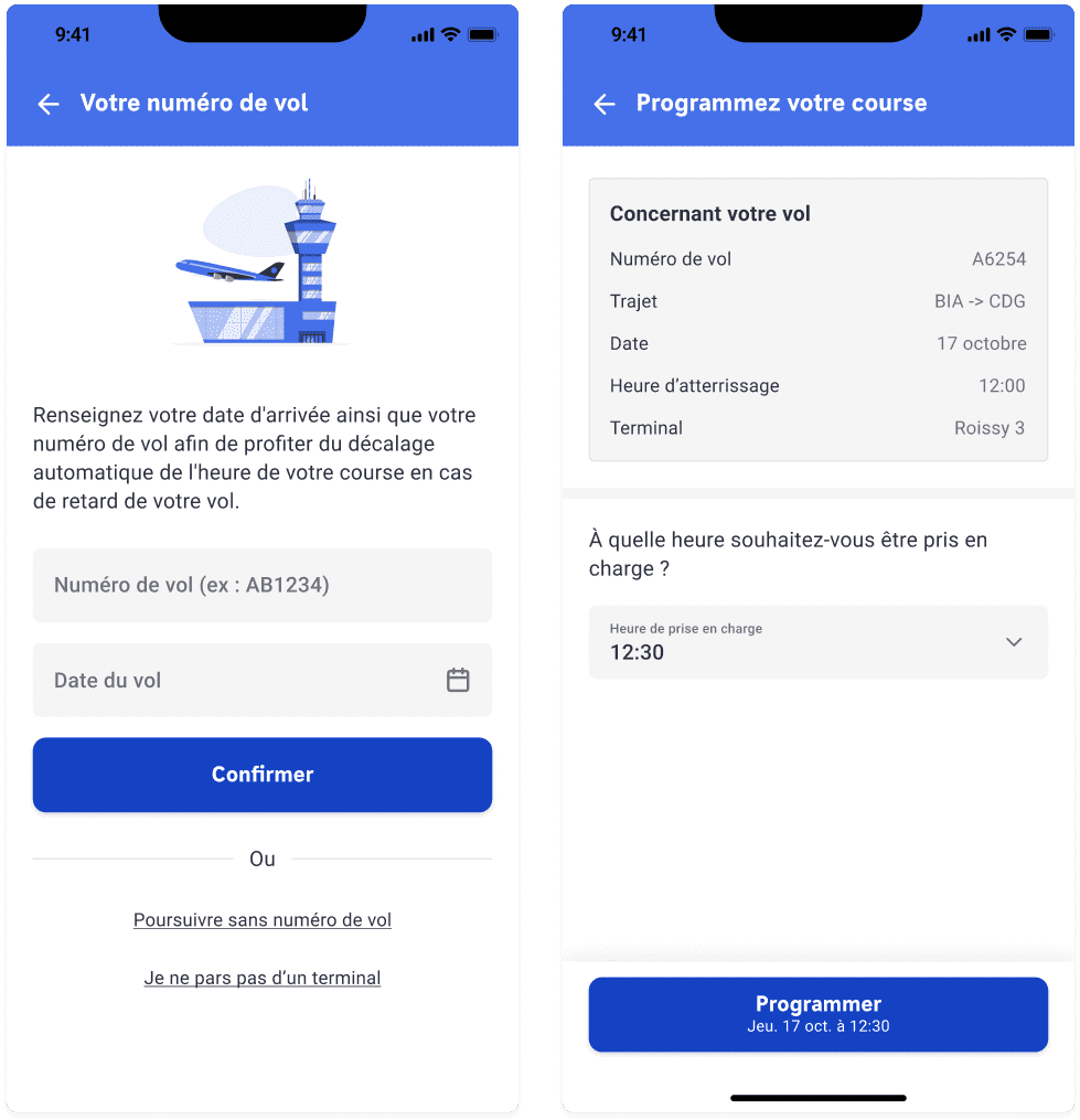 Réservez votre chauffeur en immédiat ou à l’avance. Vous pouvez aussi réserver un Cab pour un proche grâce à l’option Invité.